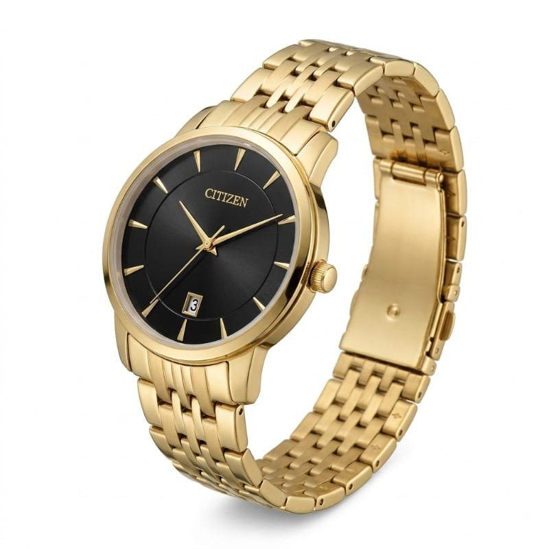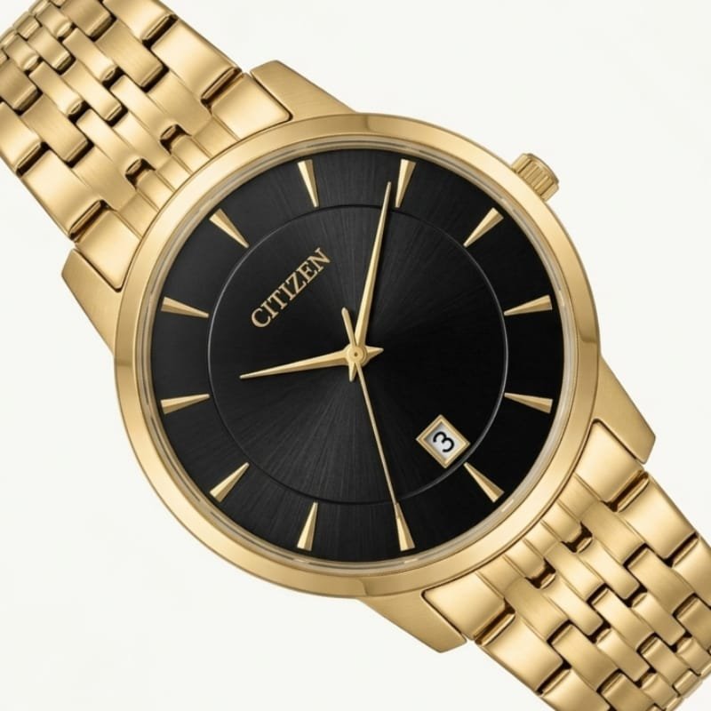 Redefine your style with a watch that speaks volumes through simplicity. This Citizen Quartz model is designed for those who appreciate a clean, uncluttered aesthetic without sacrificing luxury. The radiant gold-tone finish provides a high-end feel, making it an ideal choice for weddings, business meetings, or daily high-end wear.