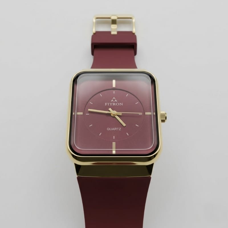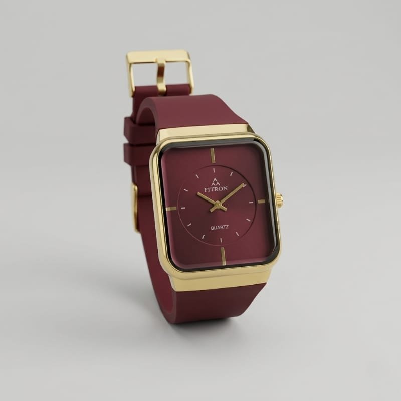 Be the first to review “Gold‑Case Fitron Quartz Watch with Maroon Strap”