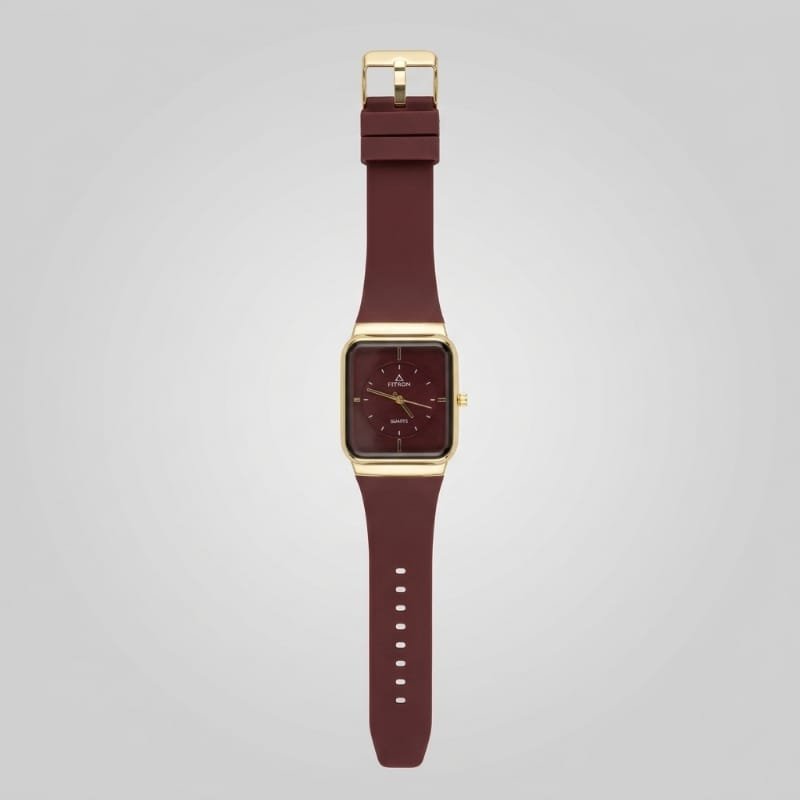 Gold‑Case Fitron Quartz Watch with Maroon Strap