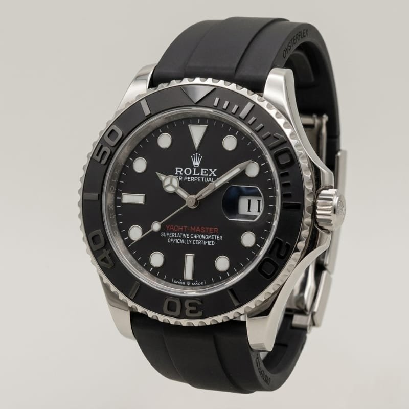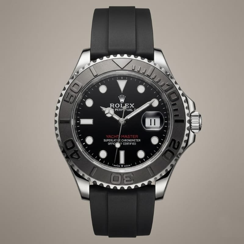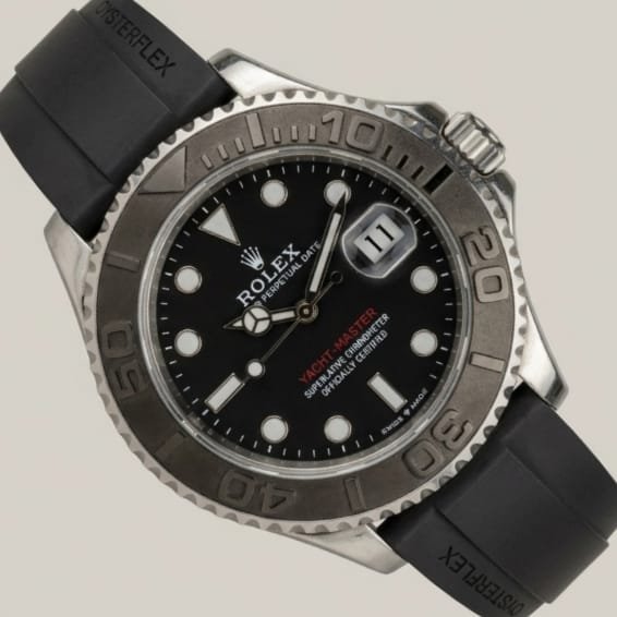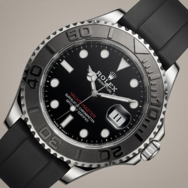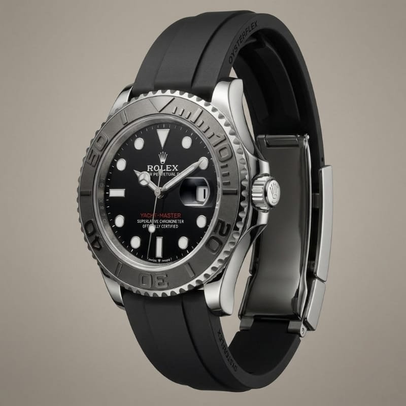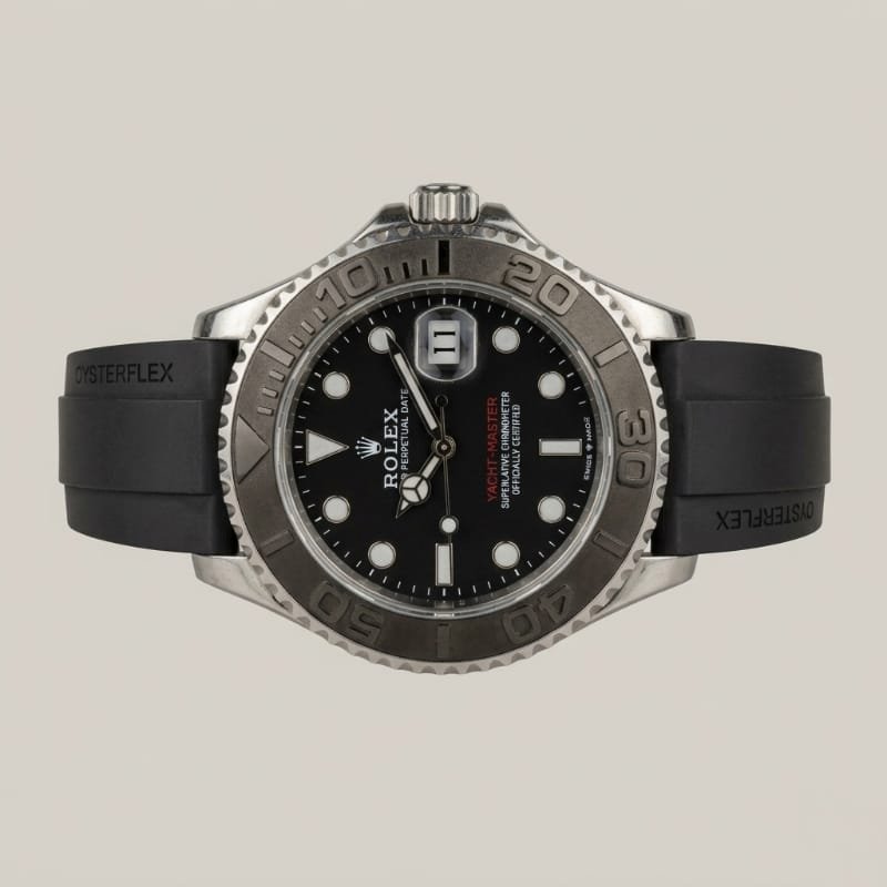 Oysterflex Excellence: Developed and patented by Rolex, the Oysterflex bracelet offers the robustness of a metal bracelet with the flexibility and comfort of an elastomer strap.
