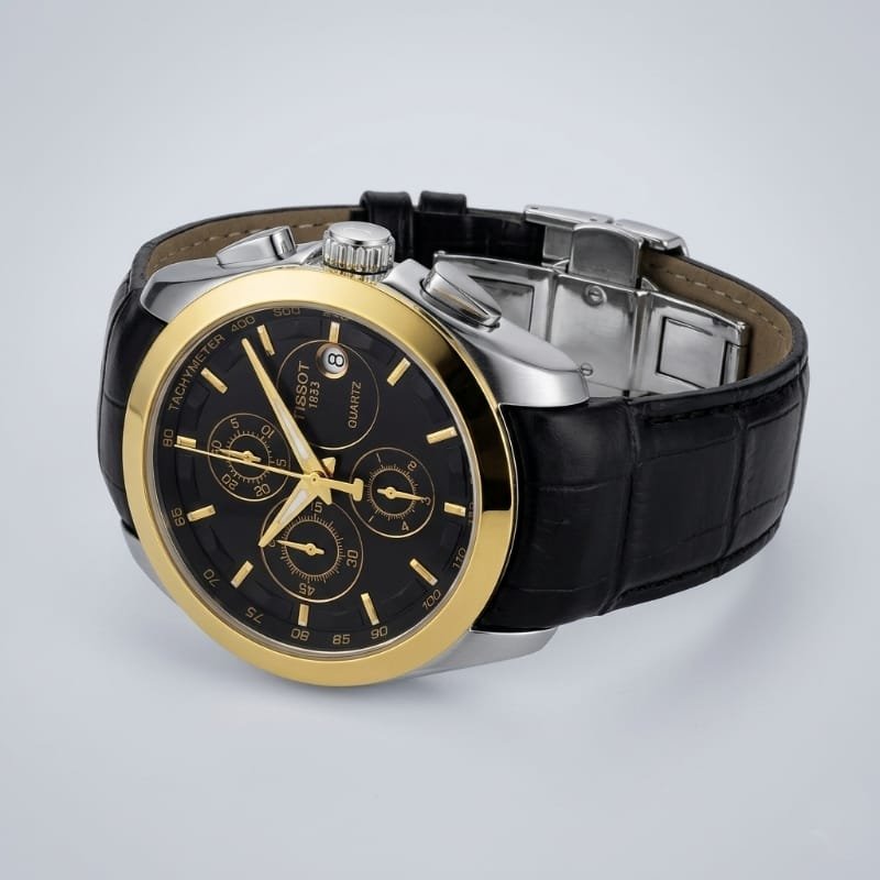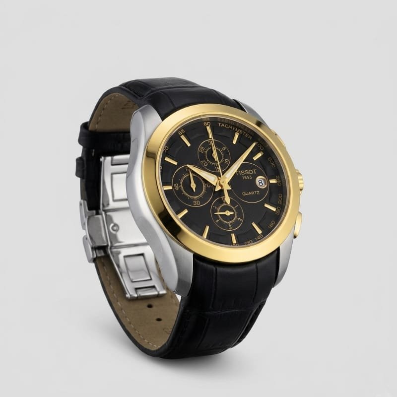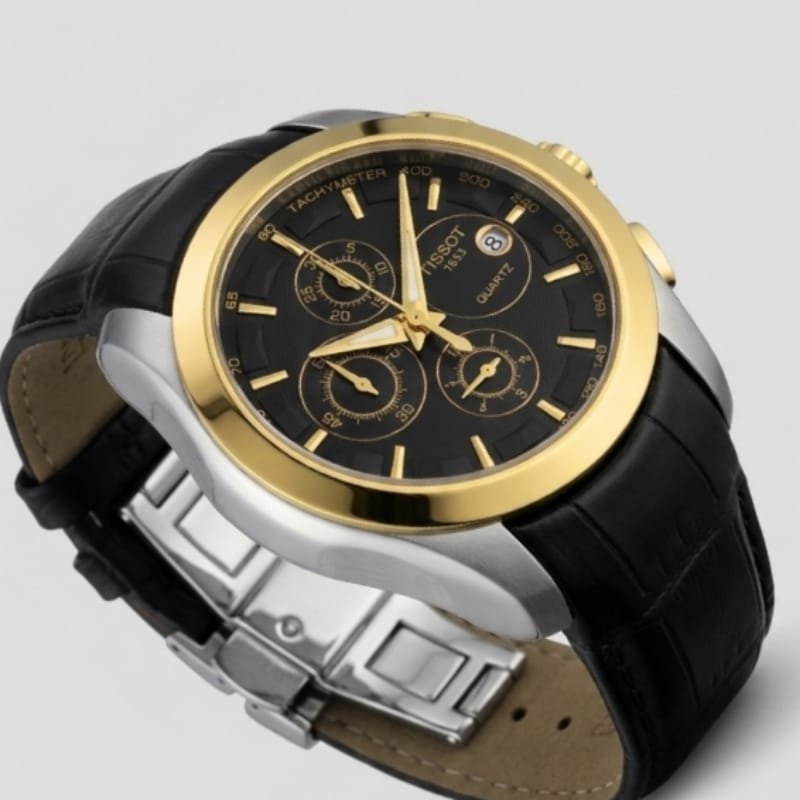 The Tissot Couturier Chronograph (Gold Edition) is designed for those who want their timepiece to stand out. Combining the reliability of Swiss quartz movement with a high-contrast aesthetic, this watch is the epitome of modern luxury.